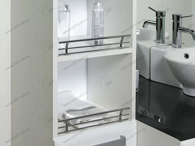 Рейлинг-барьер Starax используется в открытых полках для придания эстетичного вида и ограничения пространства для удобства хранения различных ванных принадлежностей.