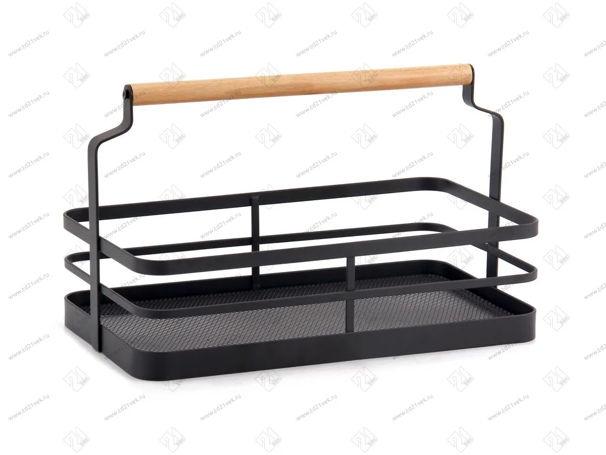 LB-1 Металлическая корзина c деревянной ручкой, черный матовый <6>