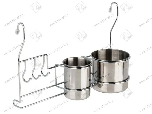 MX-400 Полка на рейлинг со стаканами для столовых приборов с крючками, 334х136х220мм, хром, <10>