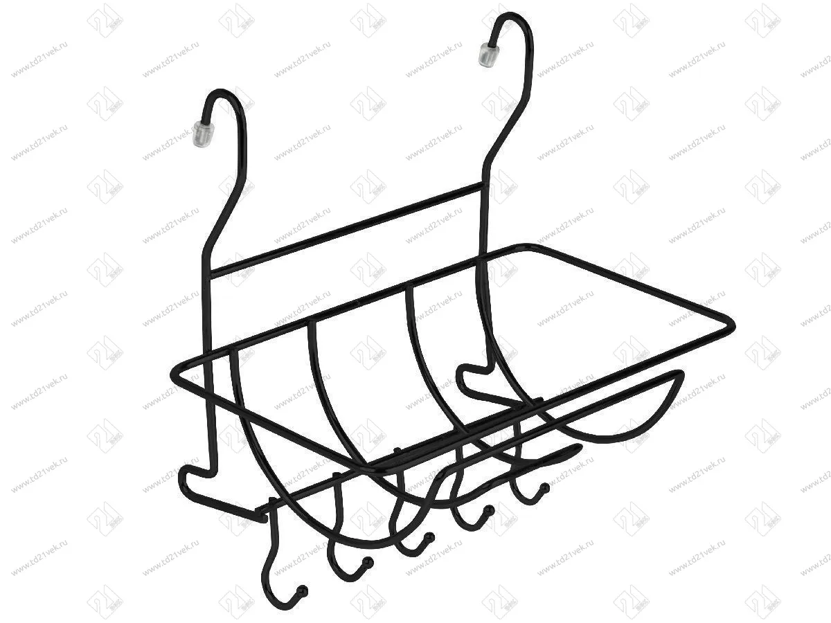MX-401 BL Полка на рейлинг для полотенец с крючками, Д260 Ш180 В270, черный матовый <12 >