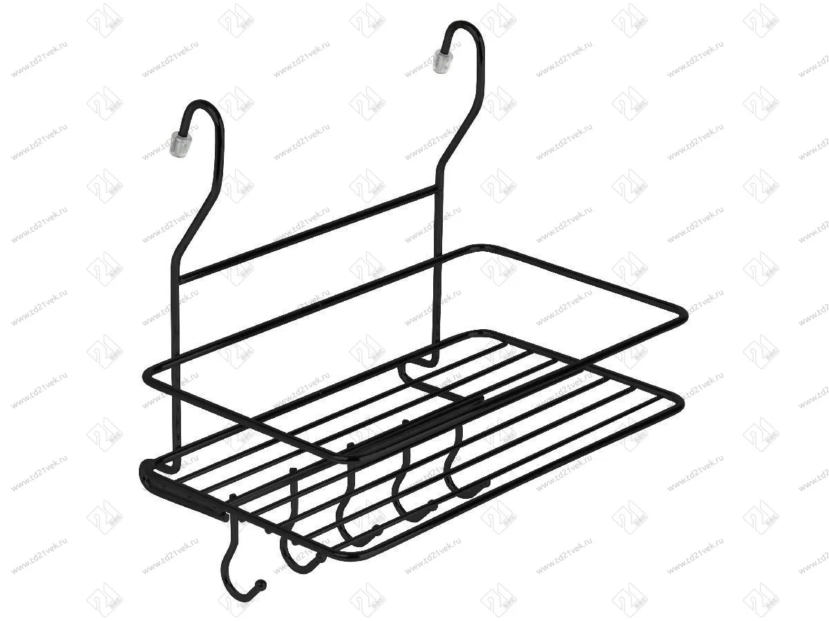 MX-403 BL Полка на рейлинг большая с крючками, Д260 Ш180 В270, черный матовый <12 >