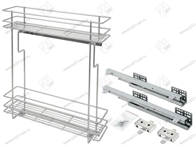Бутылочница 150 правая (448х108х535мм) на скрытых направляющих с доводчиком, хром крашенный / двухуровневая корзина