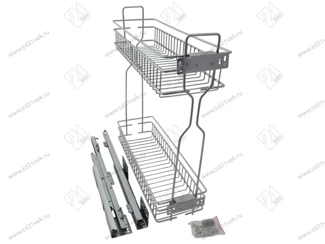 Бутылочница для кухни 200 левая, на скрытых направляющих с доводчиком / двухуровневая корзина