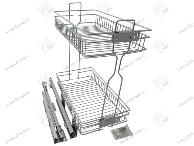 Бутылочница для кухни 300 левая, на скрытых направляющих с доводчиком / двухуровневая корзина