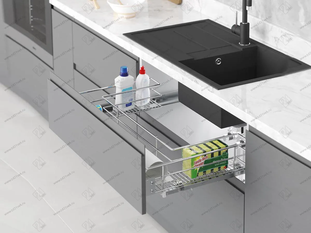 Выдвижные корзины устанавливаются в кухонный шкаф.