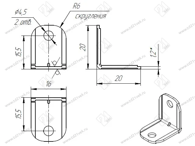 Уголок крепежный 20х20х16 мм, серый c пластиковой крышкой