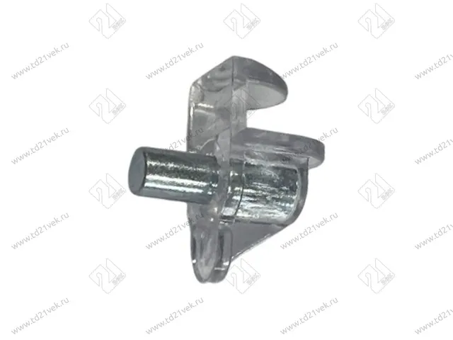 Полкодержатель для стеклянных полок, Г-образный. c упором, штифт-d5 мм, прозрачный