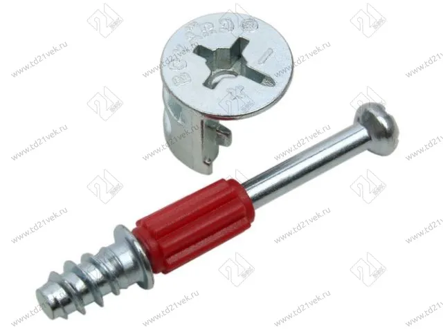 Эксцентрик d15мм, центр захвата-9мм, Н сверл/-12мм ST01/51/6/RdZn/01 + соединит/ болт L=44мм с пласт. втулкой и шурупной резьбой M6, Lрез.=11м. (100/500) <2000>