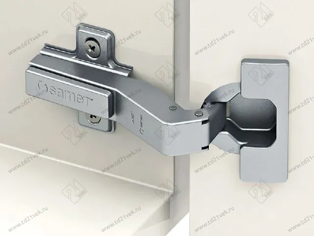 Применение: Мебельные петли – один из самых важных элементов корпусной мебели, с помощью которого крепятся фасады к корпусу. Данная модель серии Star бренда Samet – петля градусная 45°для деревянных фасадов тип Slide-on с диаметром чашки 35 мм и углом открывания 110°.