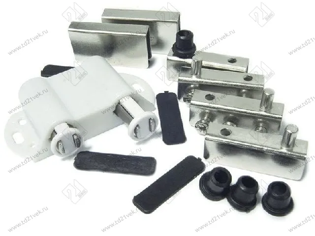 Применение: Стеклопетли – вид петель, который используется в производстве мебельных шкафов со стеклянными фасадами. Данная модель используется со стеклом 4-6мм. Не требуется сверления. Магнитный толкатель крепится к корпусу, а ответная планка на стекло. При закрытии двери магнит плотно фиксирует дверцу. Данный комплект на двухстворчатый шкаф.