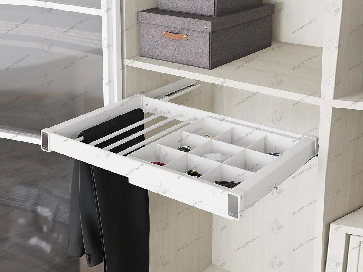 S-6705-W Брючница с органайзером для аксессуаров в базу 800 мм, Starax, (760-790х475х100 мм), направляющие Blum Tandem, белая