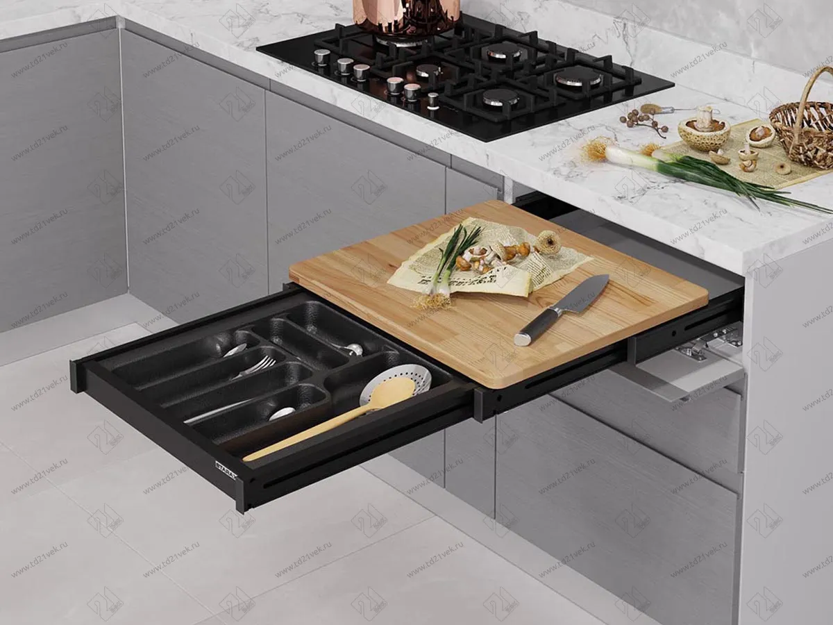 S-2156-A Выдвижной механизм Starax со столешницей и лотком, шир.600 (564х500х85) антрацит <1>