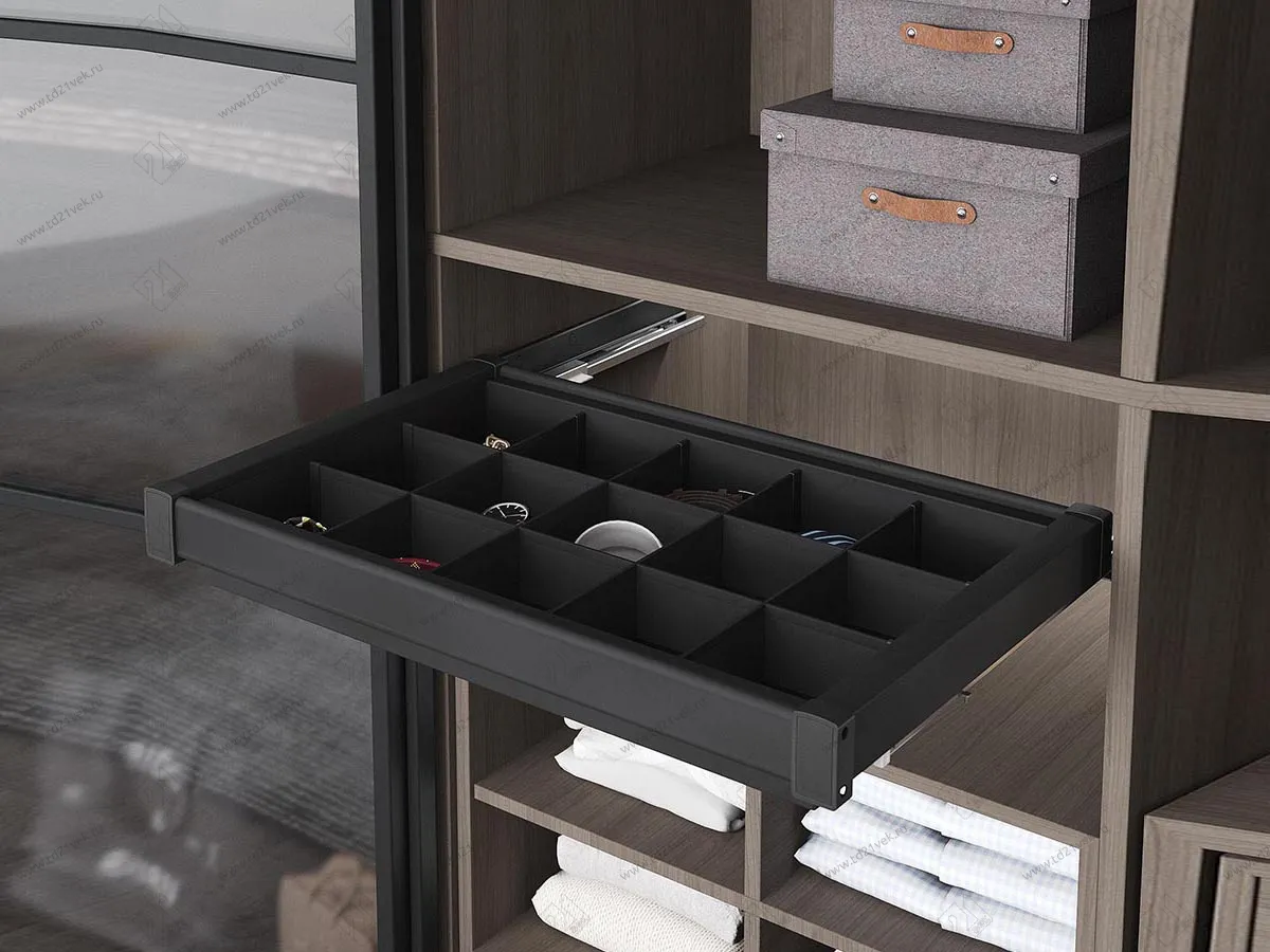 Функциональность и удобство шкафа-купе целиком и полностью зависят от фурнитуры и его наполнения. Вешалки, держатели, карусели, корзины, полки для мелочей и ящики для белья позволят расположить все необходимые вещи в шкафе-купе и обеспечат удобный и быстрый доступ к каждой из них.