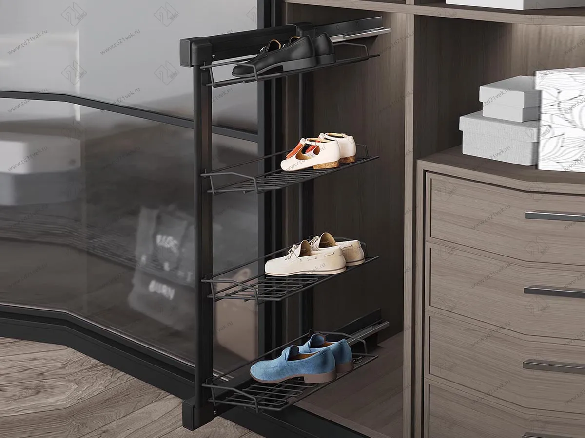 S-6741-A Выдвижная обувница, Starax, 4-х ярусная, (325х475х1000 мм), выдвижение левое, антрацит