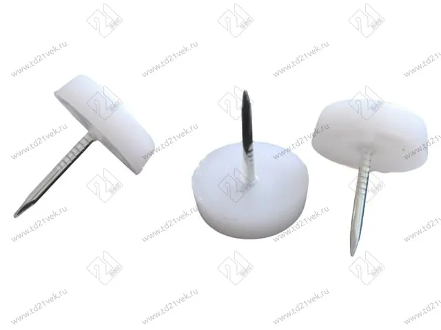 Подпятник с гвоздем d15*h20мм, базовый, гвоздь-1,3мм, белый