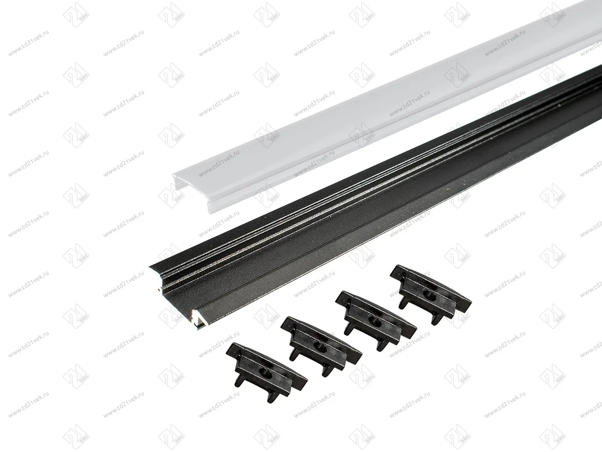 17.800.00.445 / 19.143.37.877 / 19.143.39.766 Профиль алюминиевый КСС 2507Е(W) ЧЕРНЫЙ врезной 2м, диффузор плоский полуматовый, 4 заглушки чёрные.