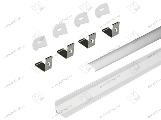 17.800.00.395 / 19.143.39.325 Профиль алюминиевый КСС 1616W, диффузор молочный белый, накладной, L=2м, 4 клипсы, 4 загл. с отверст, серебро