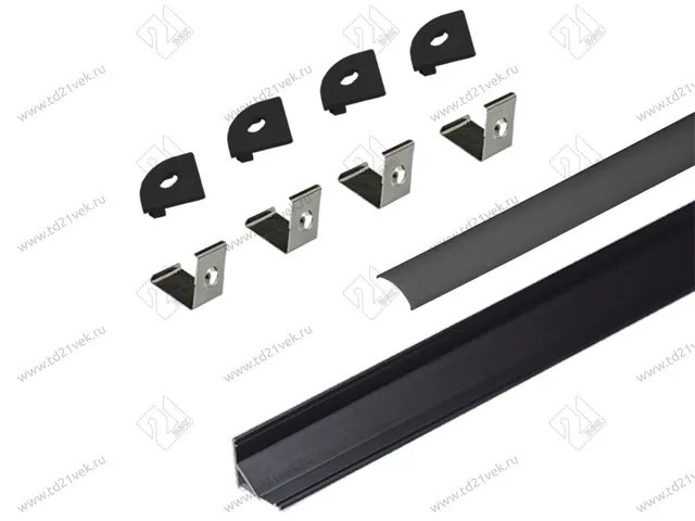 17.800.00.396 / 19.143.39.334 Профиль алюминиевый КСС 1616W накладной 2 м (ЧЕРНЫЙ), 4 кл + 4 загл с отверстием чёрные