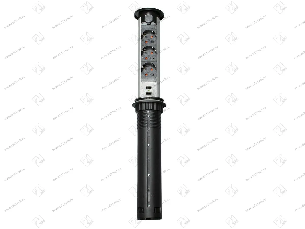 11.800.02(00).013 Блок розеток выдвижной POP UP AUTO 3XSCHUKO + 2XUSB серебро