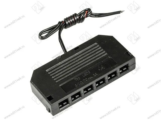 15.800.00.022 Провод соединительный с усиленным параллельным разветвителем для блоков питания, 12В,max 7А,(6 LED коннекторов L815 мама), с проводом 2x0.75мм, L=0,2м, 58,5x38x10мм