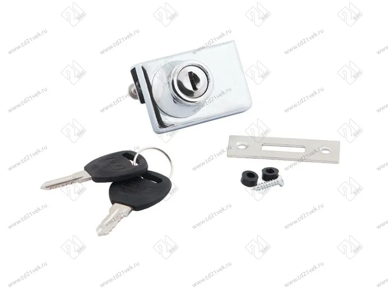 Замок №409 (805) для двойн. стекл. двери с ключом и планкой, хром <12/240>