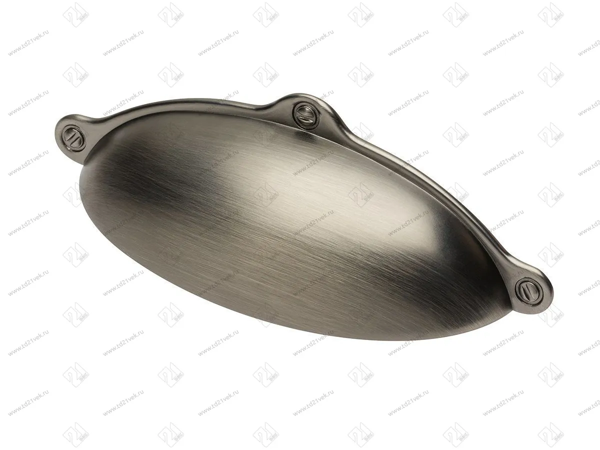 классичесая ручка типа оболочки. Совершенно симметричный полукруг украшен тремя дискретными имитациями заклепок. Ручка подходит как кухням в английском стиле, так и в стиле прованс.