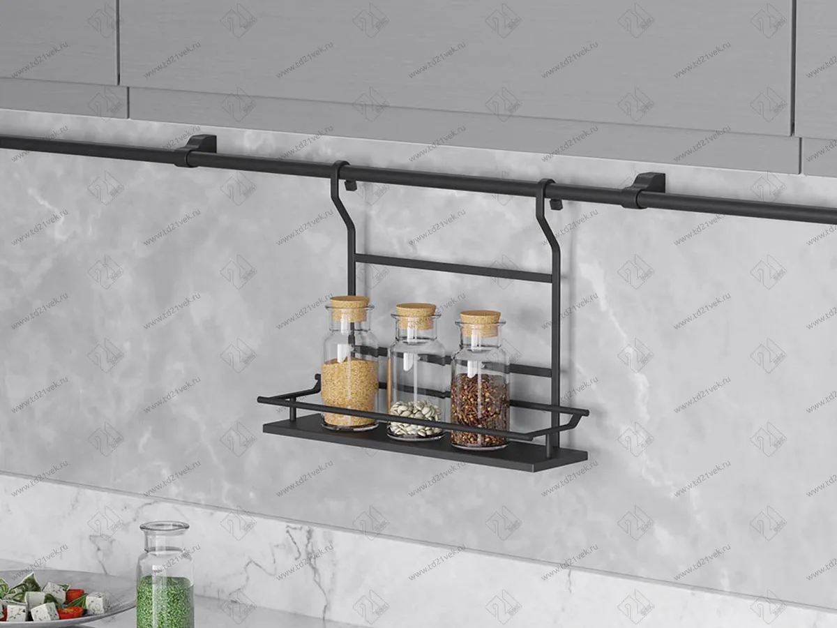 S-4123-A Полка для специй, Starax, деревянное дно, узкая, (350х130х300 мм), антрацит