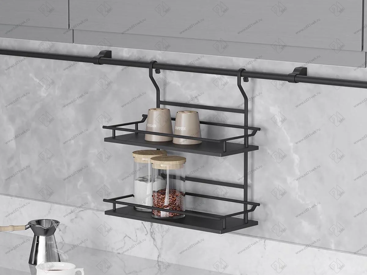 S-4126-A Полка для специй, Starax, деревянное дно, широкая, (360х165х300 мм), антрацит
