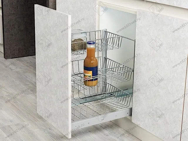 Выдвижные корзины устанавливаются в кухонный шкаф.