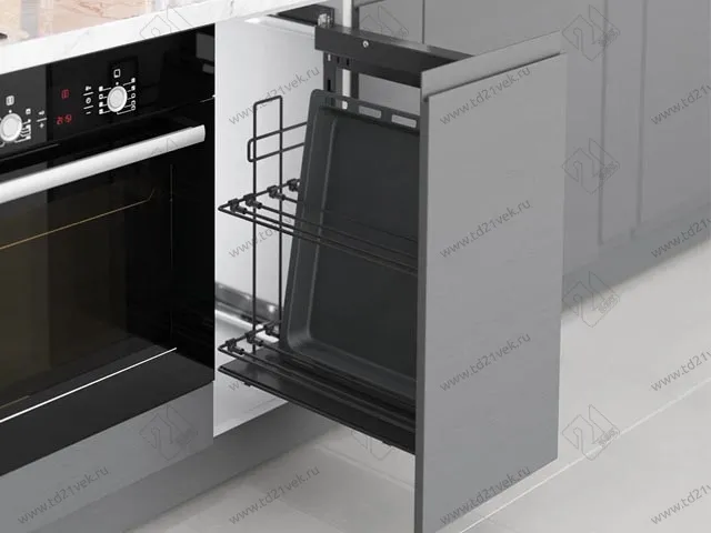Выдвижная система для хранения сковородок позволяет удобно хранить полный комплект необходимой на кухне посуды. Каждая сковорода отделена подвижным разделителем, что защитит её от механических повреждений и поможет организовать порядок