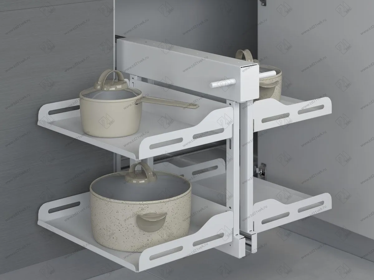 S-3006-US-W Волшебный угол для распашных фасадов в базу 400 мм, Starax, 2-х ярусный, (600х510х560 мм), правый, белый