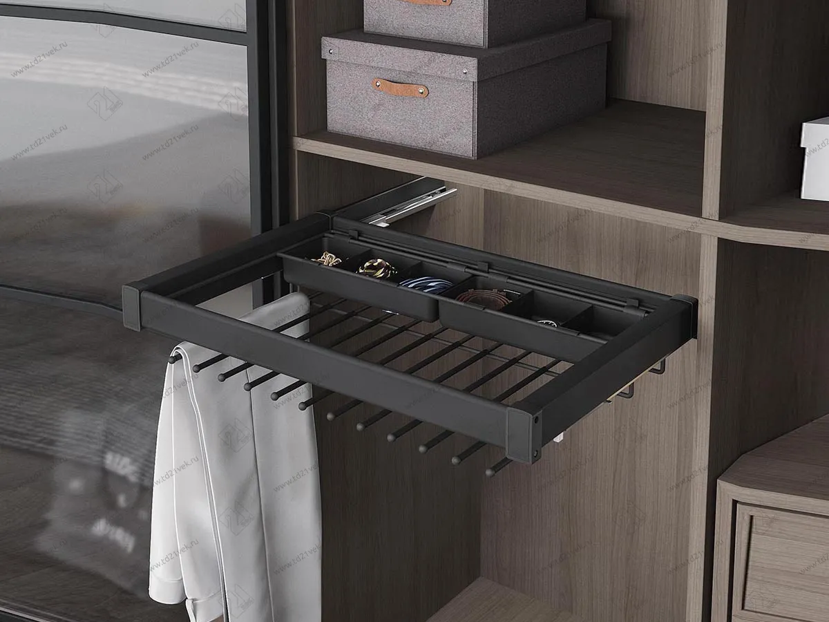 S-6711-A Брючница с органайзером для аксессуаров в базу 600 мм, Starax, (560-590х475х125 мм), направляющие Blum Tandem, антрацит