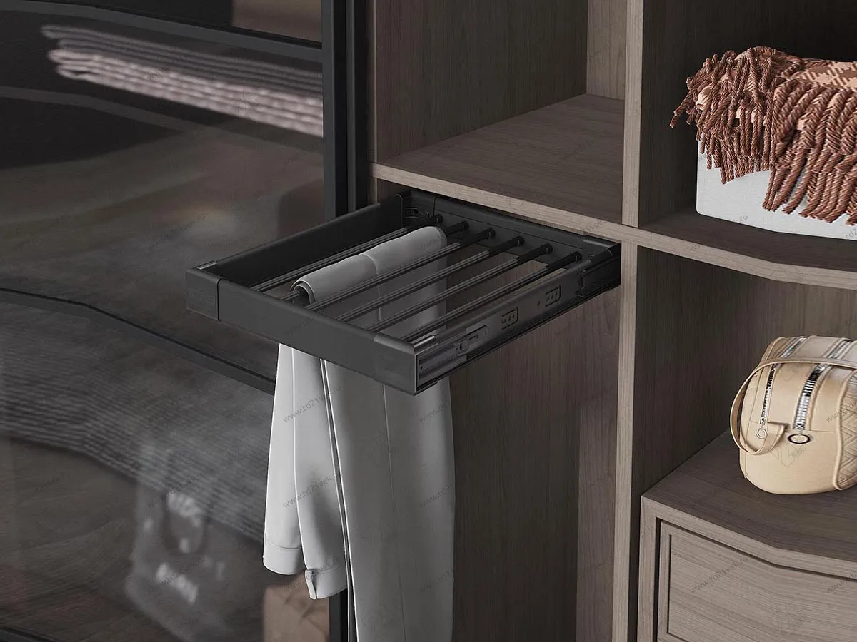 Функциональность и удобство шкафа-купе целиком и полностью зависят от фурнитуры и его наполнения. Вешалки, держатели, карусели, корзины, полки для мелочей и ящики для белья позволят расположить все необходимые вещи в шкафе-купе и обеспечат удобный и быстрый доступ к каждой из них.