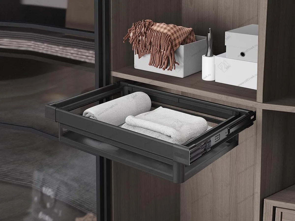 Функциональность и удобство шкафа-купе целиком и полностью зависят от фурнитуры и его наполнения. Вешалки, держатели, карусели, корзины, полки для мелочей и ящики для белья позволят расположить все необходимые вещи в шкафе-купе и обеспечат удобный и быстрый доступ к каждой из них.