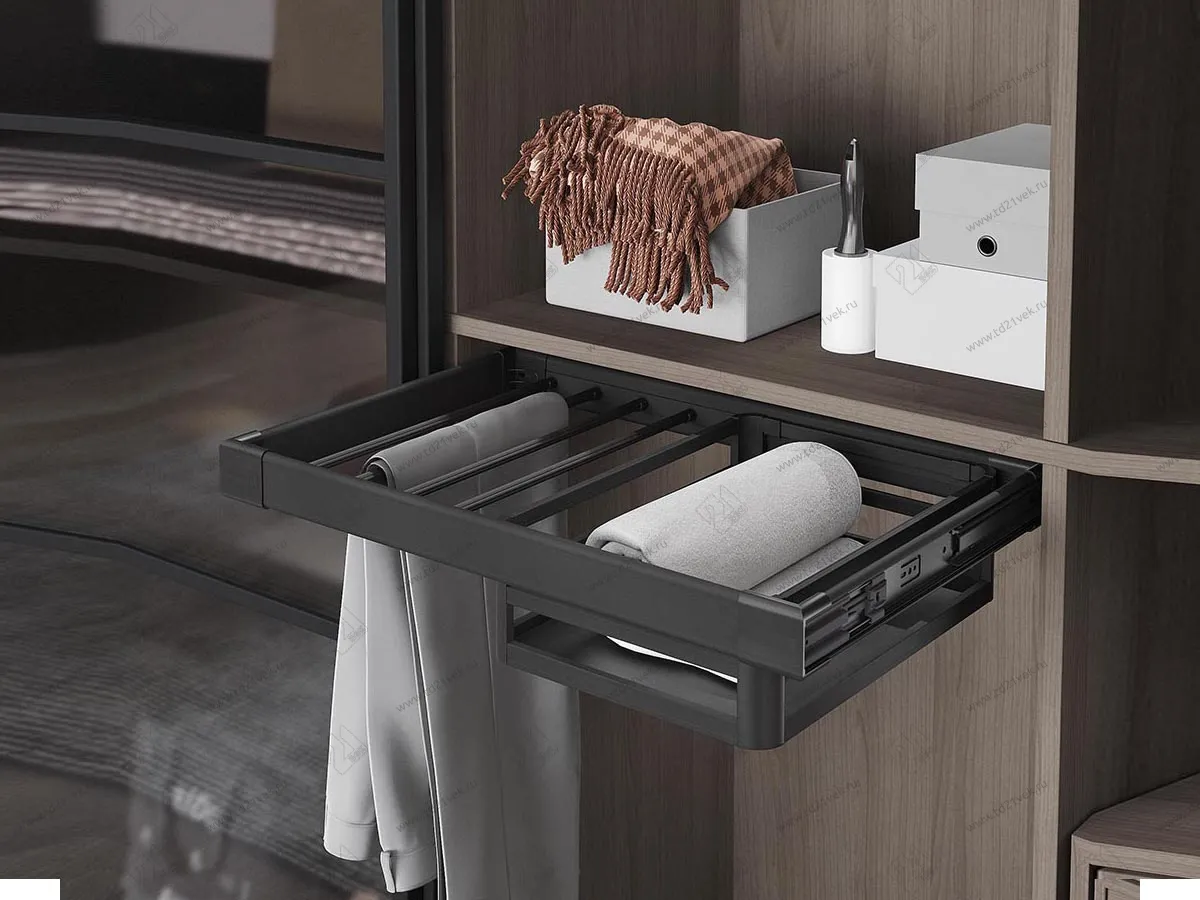 Функциональность и удобство шкафа-купе целиком и полностью зависят от фурнитуры и его наполнения. Вешалки, держатели, карусели, корзины, полки для мелочей и ящики для белья позволят расположить все необходимые вещи в шкафе-купе и обеспечат удобный и быстрый доступ к каждой из них.