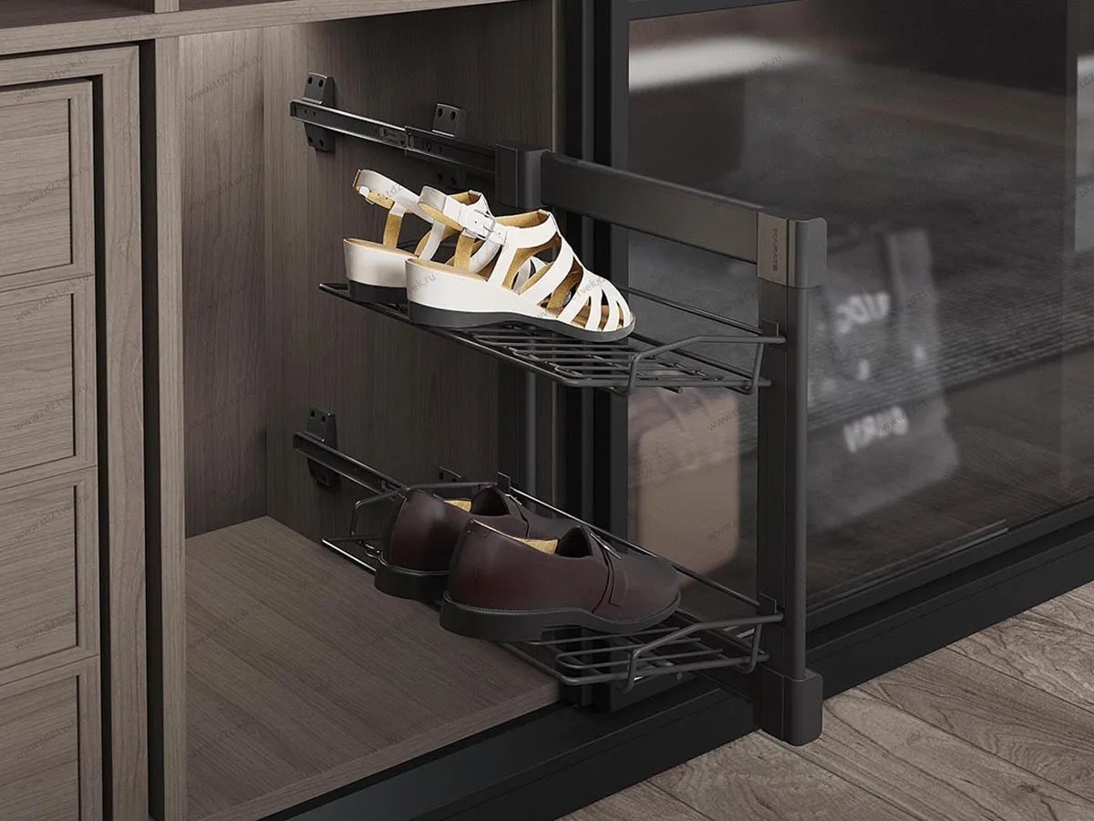 S-6282-А Полка Starax для обуви двухъярусная (300х470х520) с доводчиком, правая <1>