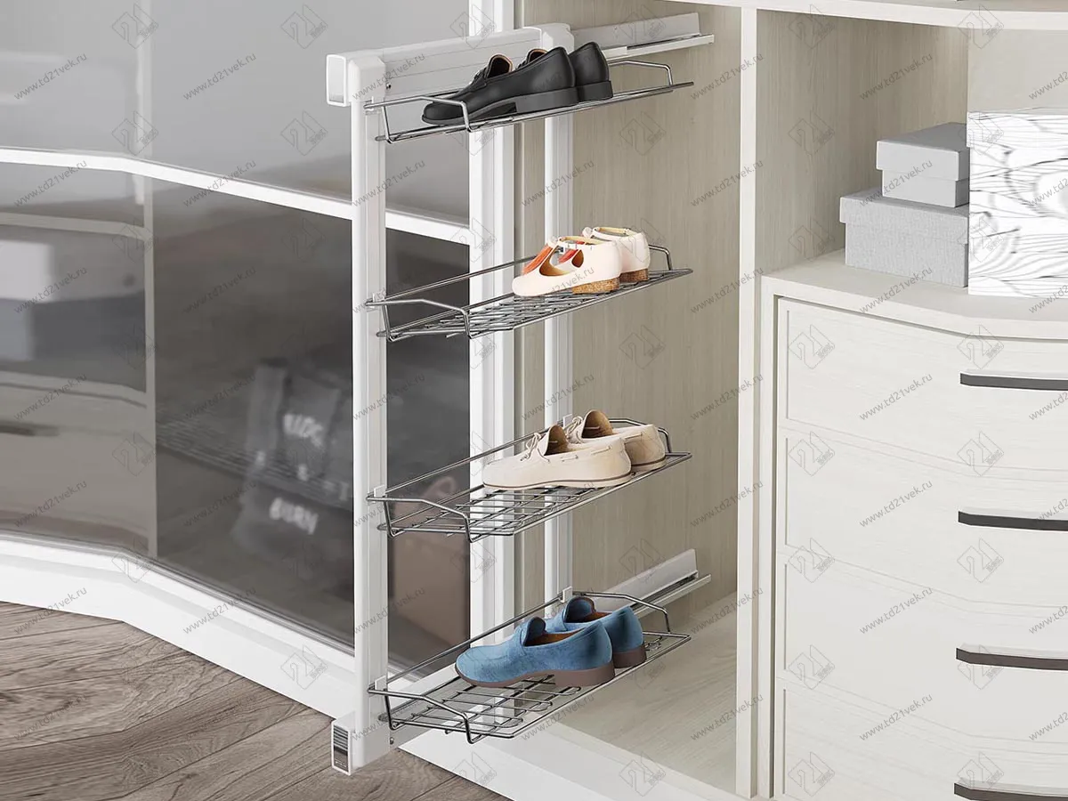 S-6741-W Выдвижная обувница, Starax, 4-х ярусная, (325х475х1000 мм), выдвижение левое, белая