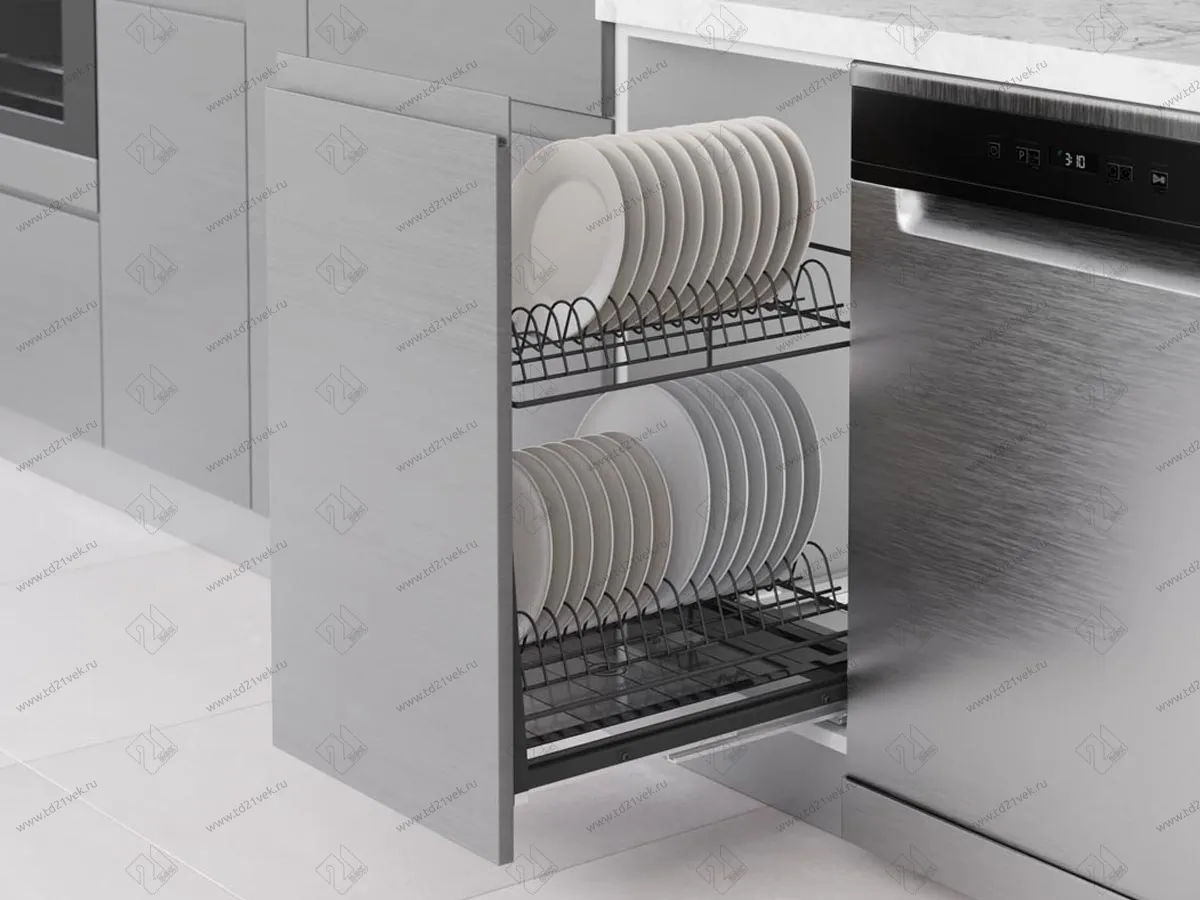 S-2113-А Сушка для посуды выдвижная в нижнюю базу 450 мм, Starax, 2-хуровневая, направляющие шариковые, с доводчиком, (408x520x490 мм), антрацит