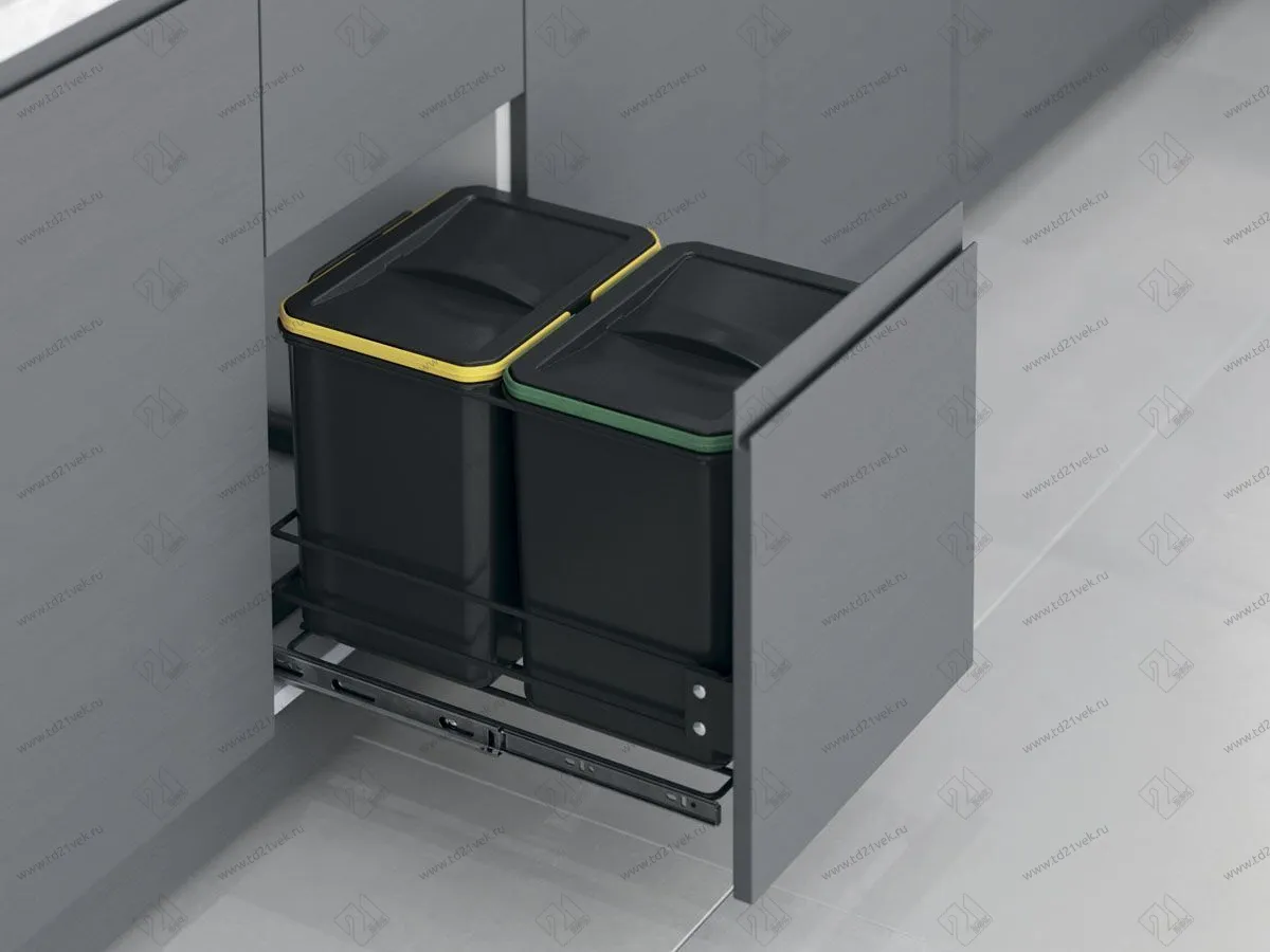 S-2582-A Мусорное ведро Starax 16+16л. шир. 400, с фас.крепл (340x485x385)<1> Антрацит