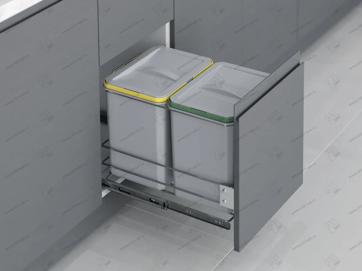 S-2582-G Мусорное ведро Starax 16+16л. шир. 400, с фас.крепл (340x485x385)<1> Серый